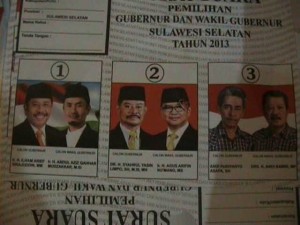 "Itu jelas, karena, pembuat suara di Pilgub 2007 itu juga yang sekarang ini, itu di Jl Talasapang Makassar. makanya kami duga, sudah ada konspirasi jekkong di sini. Kalau gambar Syahrul-Agus yang sudah tercoblos duluan di kertas suara dibiaarkan tersebar, maka rakyat Sulsel betul-betul dijekkongi lagi," Jefry Timbo yang juga mantan Sekertaris AMPG Golkar Makassar ini menambahkan.