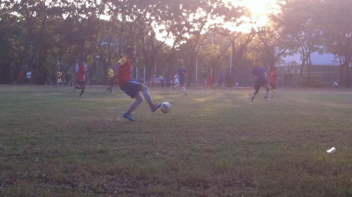 TRIBUN-TIMUR.COM, MAKASSAR - Tim Sepakbola Porda Makassar gelar ujicoba dilapangan Karebosi Makassar, Kamis (14/8/2014). Kali ini melawan tim PON Remaja.