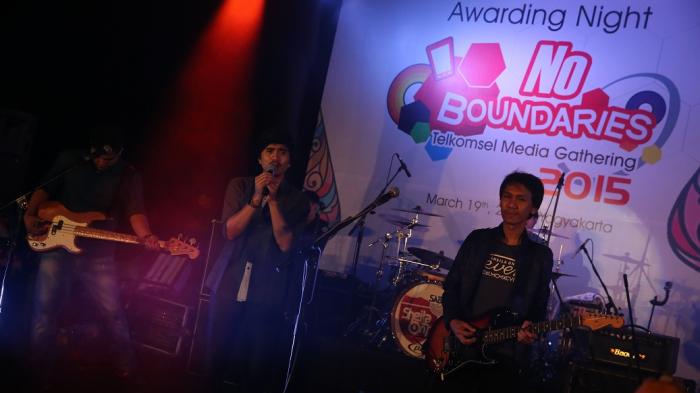 Band Sheila on 7 menghibur para peserta dalam ramah tamah Media gathering Telkomsel 2015 yang dihadiri perwakilan wartawan se-Indonesia di Candi Boko, Kalasan, Kamis (19/3.2015) malam.