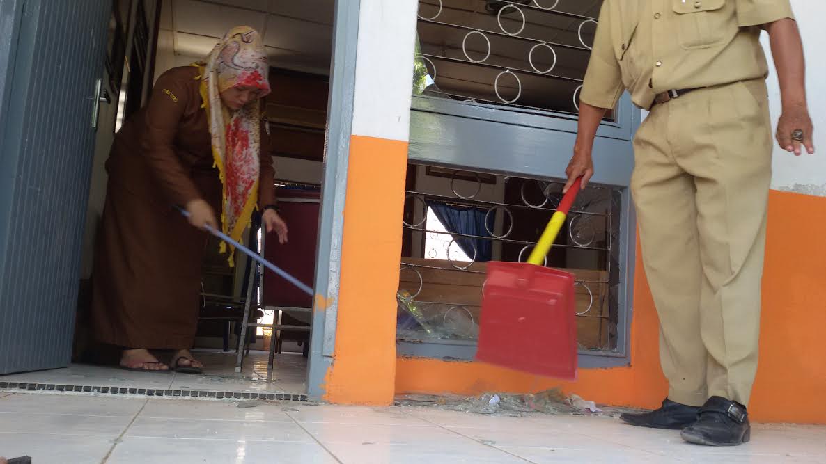 SMKN 3 Makassar Diserang, Kaca Jendela Dipecahkan