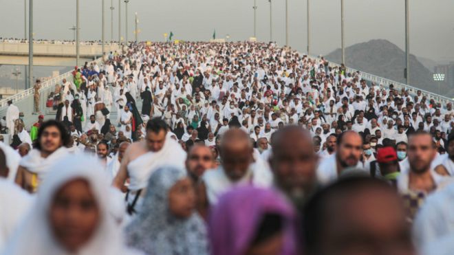 [Ratusan ribu orang jamaah melakukan pelemparan jamrah. FOTO: BBC]