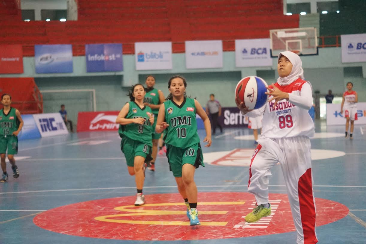 Tim Putri Unhas berhasil menaklukkan Tim Putri UMI dengan skor 62-29 pada partai lanjutan fase pool LIMA Basketball BCA Sulawesi Conference 2015