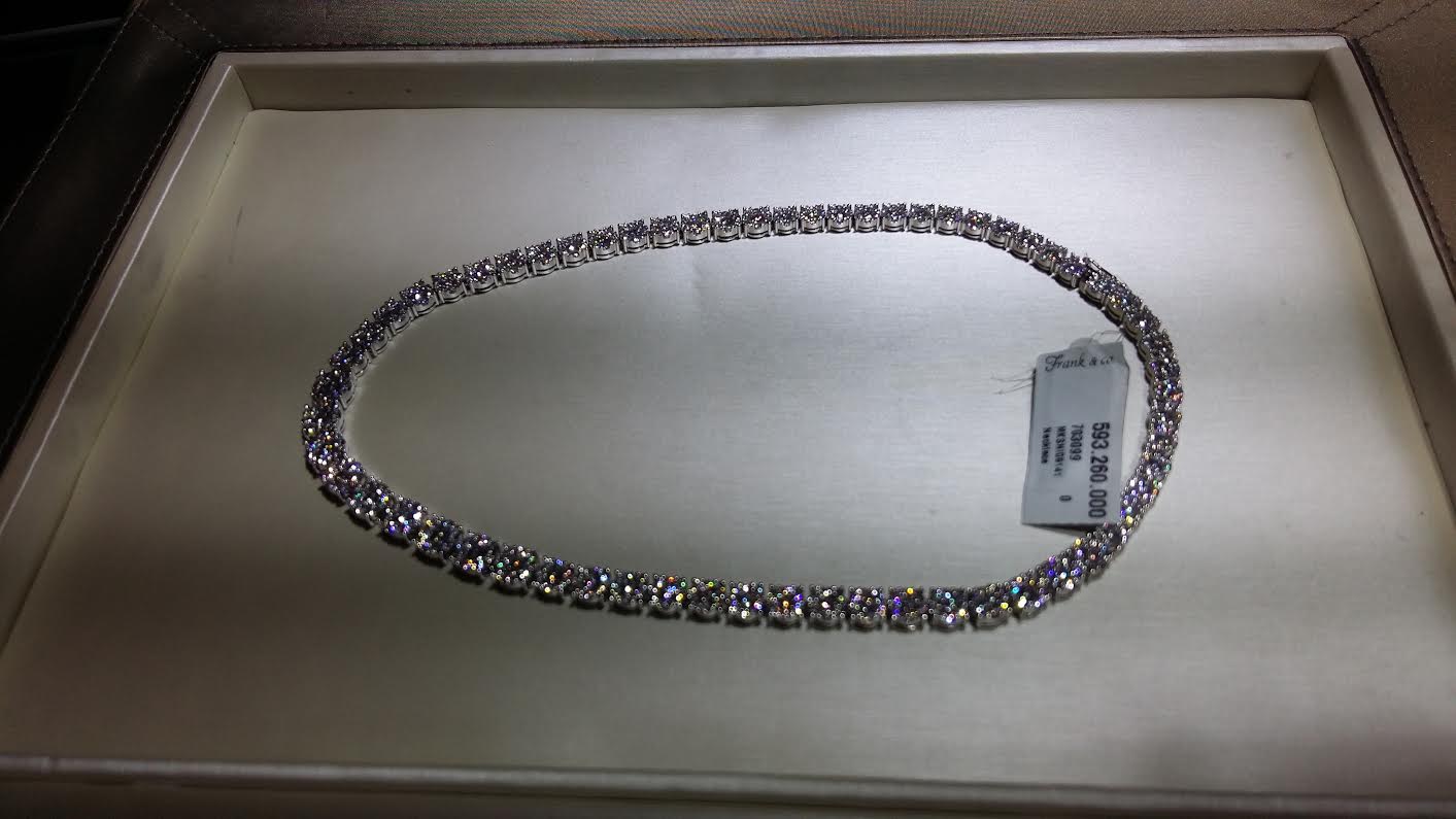 Koleksi kalung terbaik ditawarkan dengan berar 14,9 karat seharga Rp 593 juta. Harga koleksi kalung ini tidak jauh beda dengan harga cincin sebelumnya karena potongan berliannya kalung cukup kecil padahal beratnya cukup jauh berbeda. Ada juga koleksi gelang dengan 7,4 karat berlian dipatok seharga Rp 326 juta.