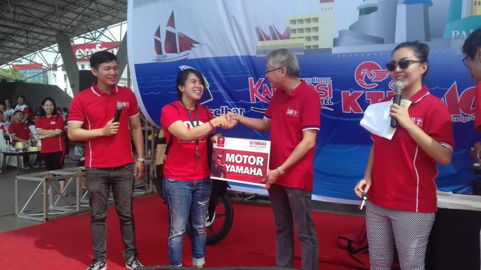 Eka beruntung terpilih sebagai salah satu dari tiga pemenang hadiah motor pada acara jalan santai PD INTI Sulsel, Minggu (6/12/2015) di Lapangan Karebosi Makassar.