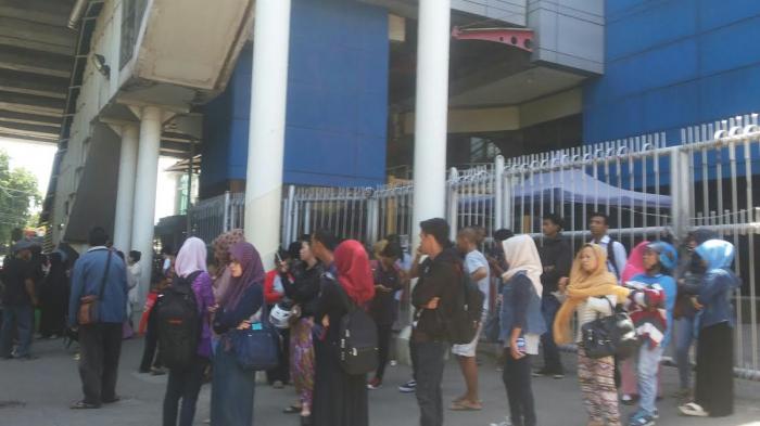 Berdasarkan pantauan Tribun di Makassar Trade Center (MTC), pegunjung menumpuk di depan MTC. Ada pula yang menunggu di bawah pohon di depan Bank Mandiri.