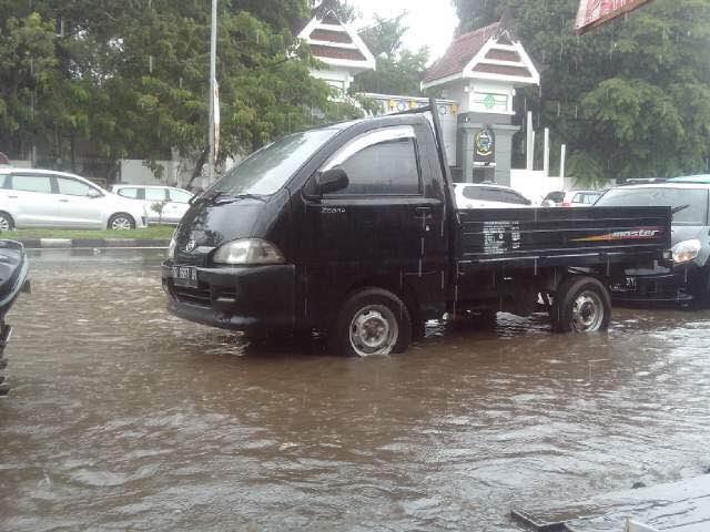 Genangan setelah beberapa menit hujan mengguyur kawasan ini.
