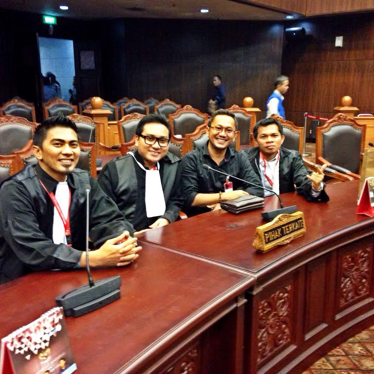 Irwan Satura (dua dari kanan) berfoto bersama tim hukum usai sidang gugatan di MK