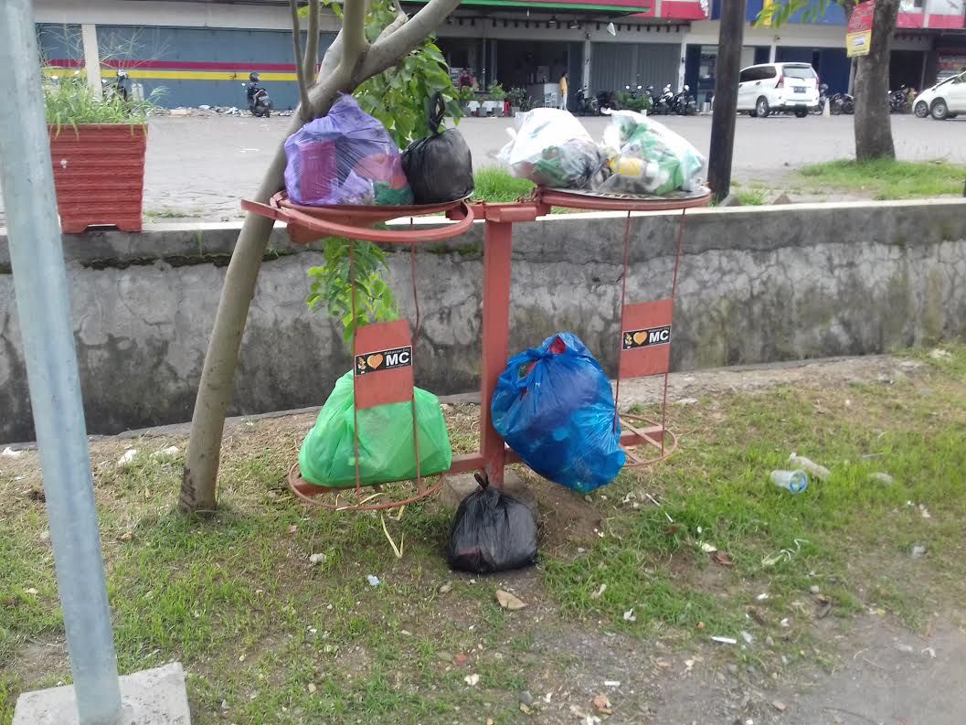 Tempat sampah gendang dua yang terletak di Jl Perintis Kemerdekaan, tepatnya depan STIMIK Dipanegara tampak tak dilengkapi kantong sampah.