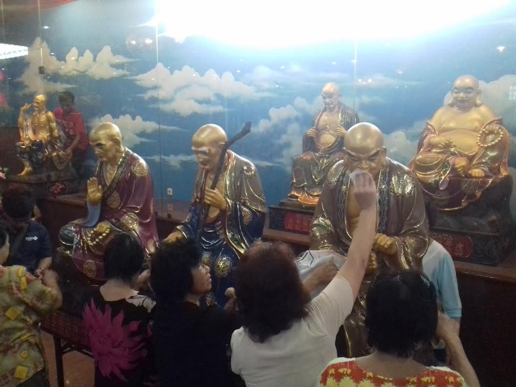 Puluhan patung di klenteng yang terletak di Jl Sulawesi, Makassar, Sulawesi Selatan ini dibersihkan oleh warga Tionghoa yang datang.