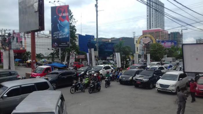 Padat Kendaraan depan Hotel Grand Asia Makassar, Lalu Lintas Melambat