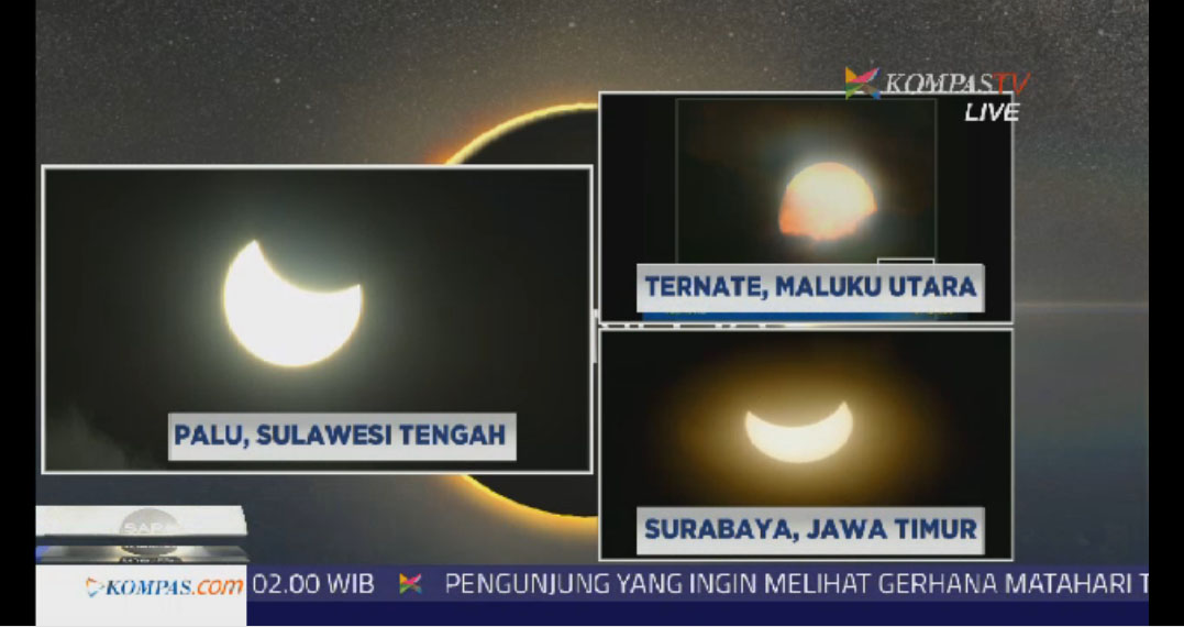 Penampakan Matahari saat Gerhana Matahari Total di Palu, Ternate, Surabaya