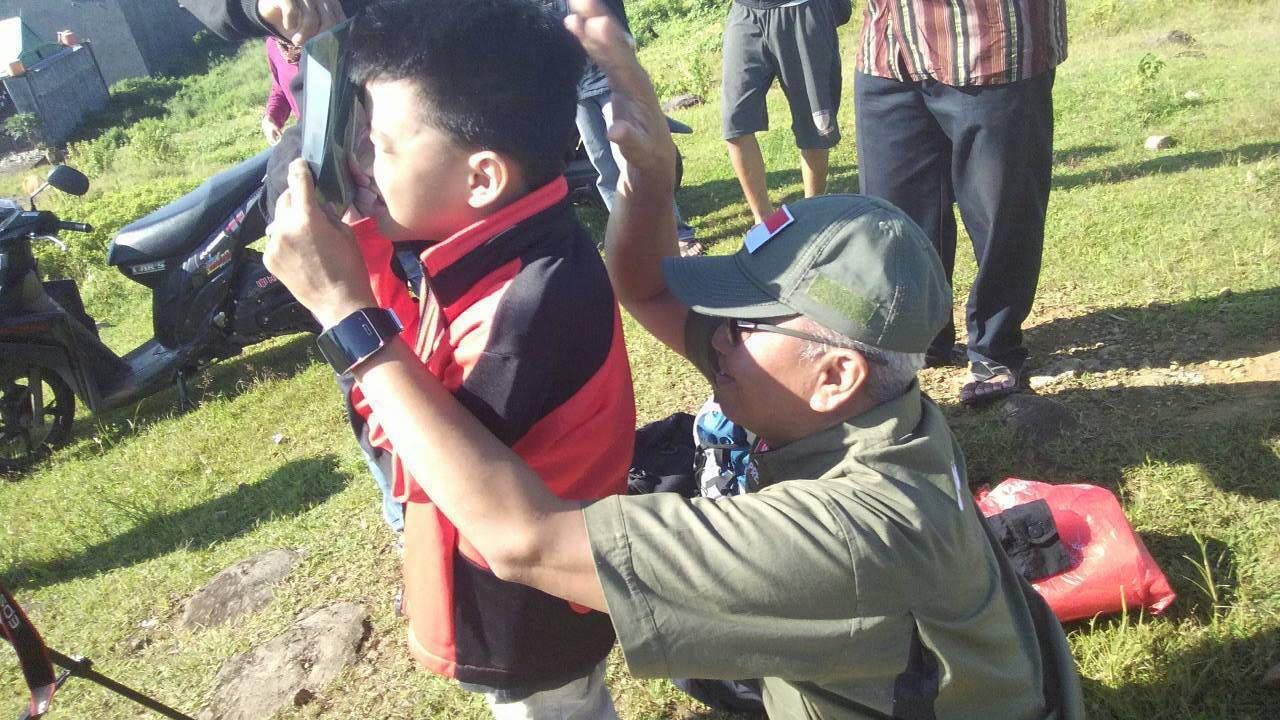 Wagub Sulsel Lihat Gerhana Bareng Anak di Samata, Pakai Filter Rontgen