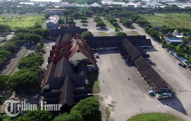 KONDISI Terminal Regional Daya (TRD), Makassar, Sulawesi Selatan yang terlihat sepi tanpa aktivitas menaikkan dan menurunkan penumpang angkutan umum sebagaimana terekam dari udara menggunakan kamera pada pesawat tanpa awak, Jumat (1/4/2016).