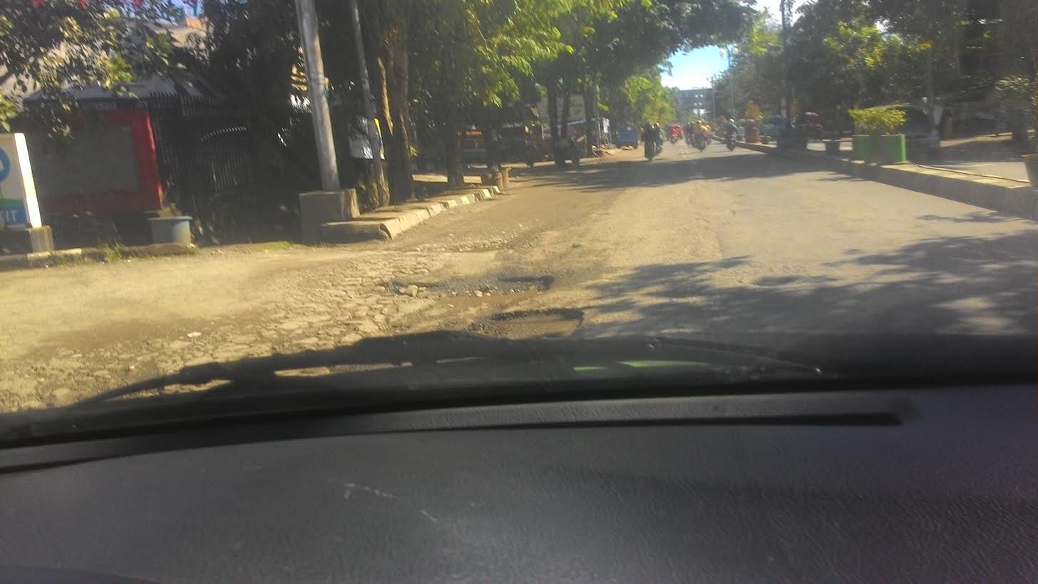 Jika ban mobil menginjak lubang itu, kaki- kaki maupun ban mobil bisa rusak. Pengendara motor juga bisa jatuh.