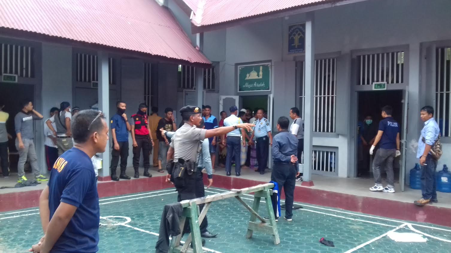 Seluruh napi diminta berkumpul di musala lapas kemudian polisi memasuki kamar tahanan untuk menggeledah.