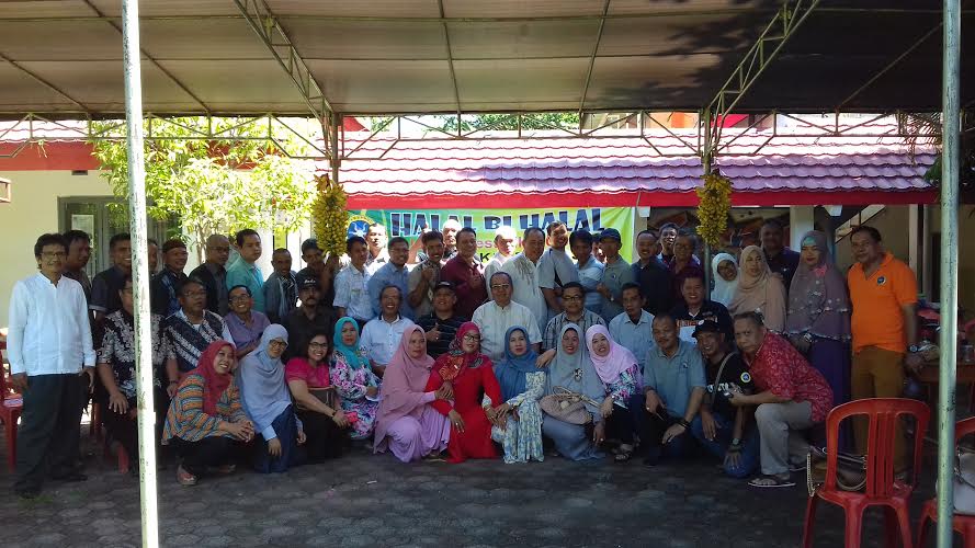 Reuni yang dirangkaikan dengan halal bi halal tersebut dipusatkan di halaman sekolah.