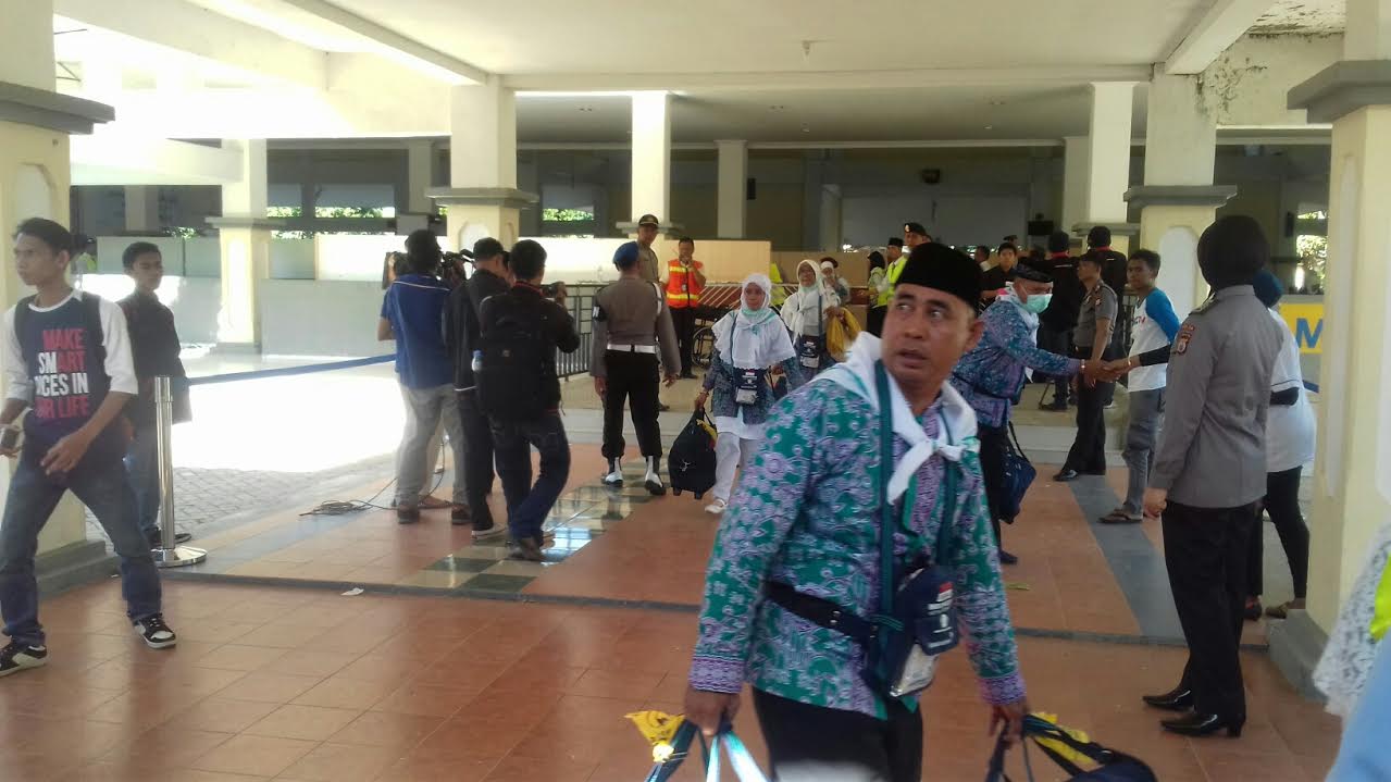 Sebanyak 450 JCH ditambah lima orang pendamping dan tenaga medis dibawa menuju Bandara Internasional Sultan Hasanuddin Makassar dengan menggunakan 11 buah bus Damri.