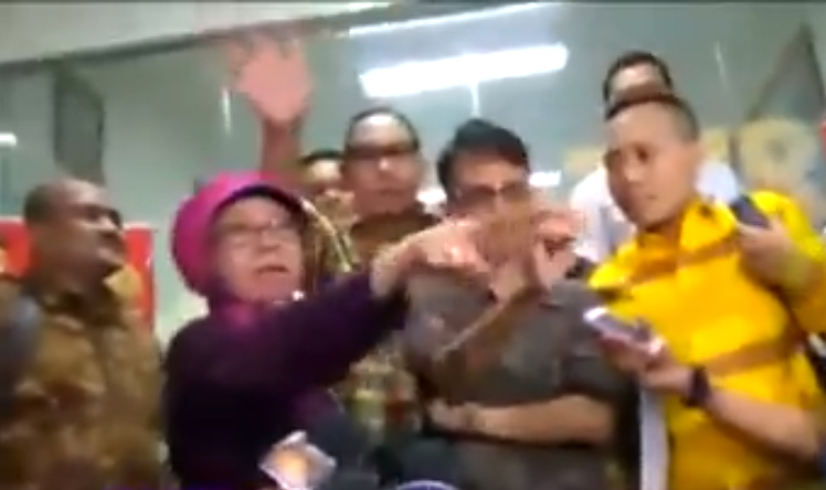 "Hee..!,” teriak Aryani sambil menunjuk-nunjuk wartawan.