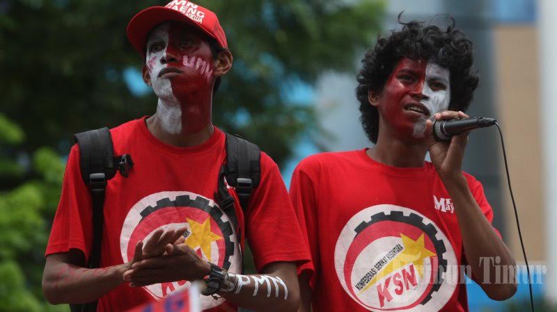 FOTO: Demo Buruh Desak Pemkot Makassar Naikkan UMK