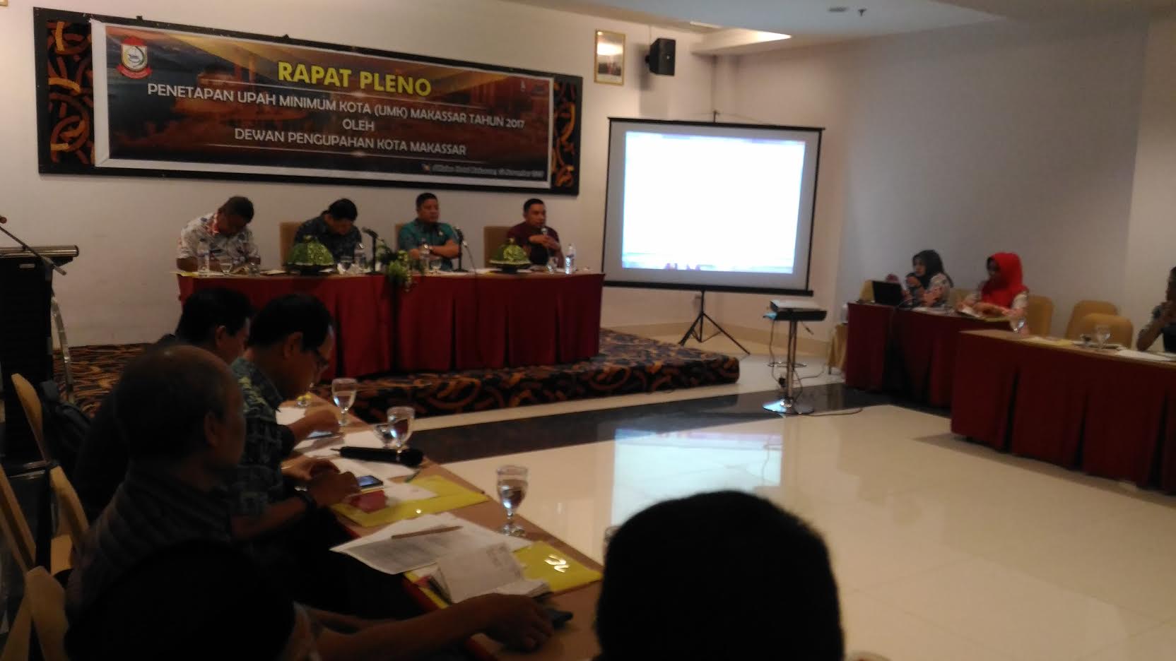 Dinas Tenaga Kerja Kota Makassar mengadakan rapat pleno yang membahas tentang penetapan upah minimum kota (UMK) Makassar 2017.
