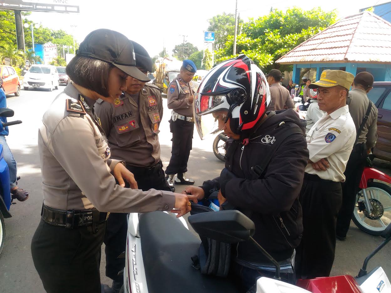 Dalam operasi kali ini, Satlantas dibantu Polwan cantik Reskrim untuk menghentikan pengendara.