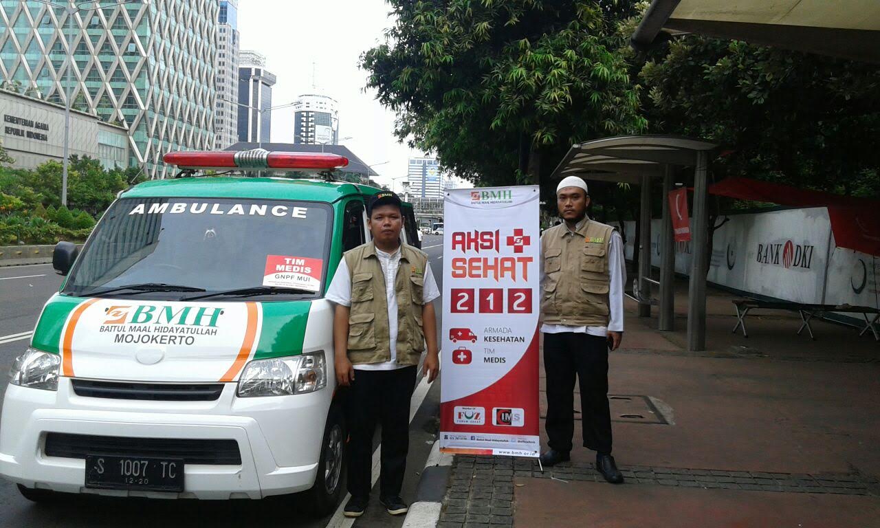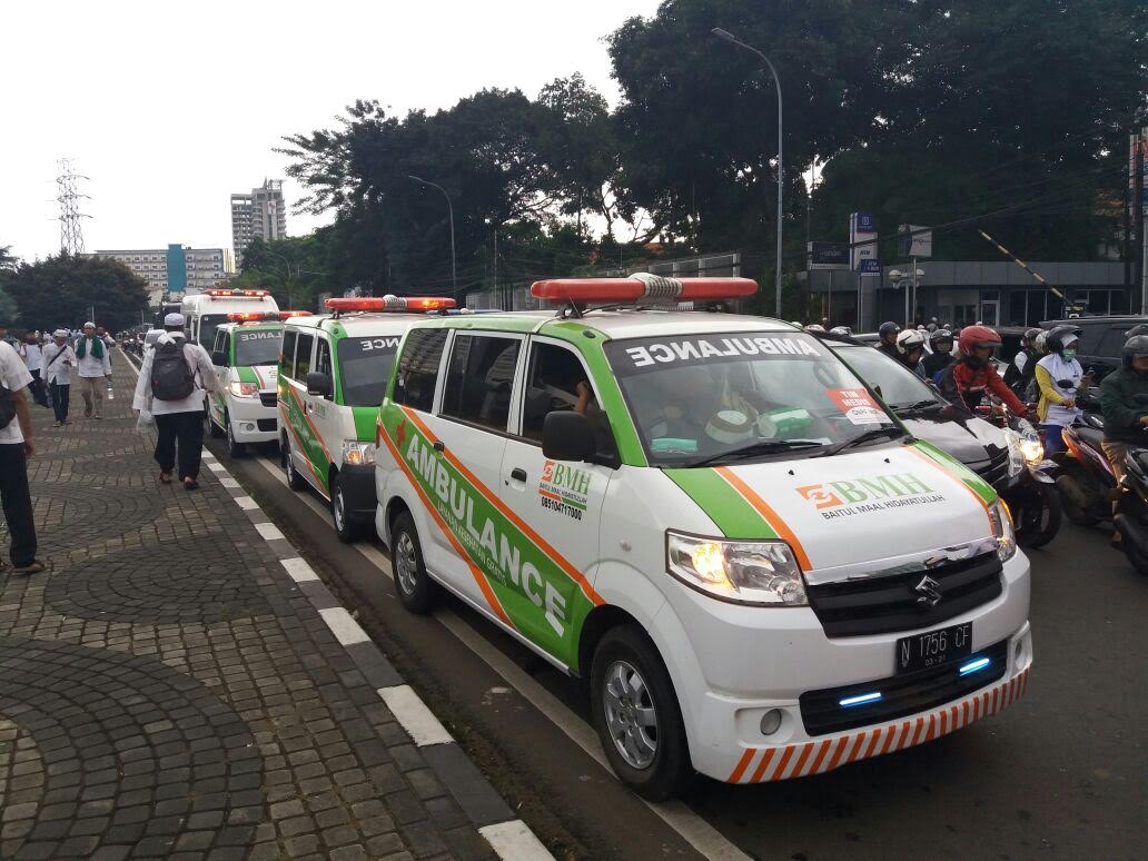 Sebaran ambulance dan tim medis Laznas BMH dalam Aksi Sehat 212 ini, sejak siang sudah mulai didatangi peserta aksi dan dijadikan tempat istirahat hingga penanganan medis.