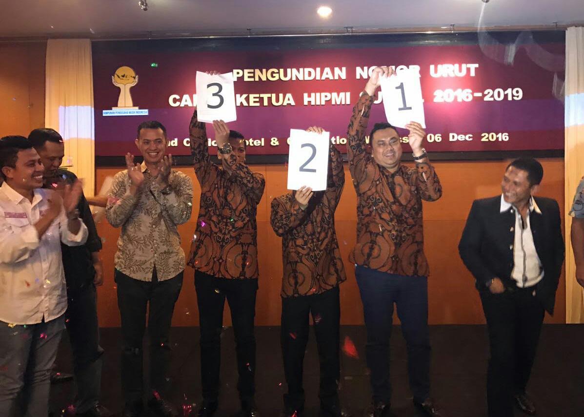 Tiga Calon Ketua Umum Badan Pengurus Daerah Himpunan Pengusaha Muda Indonesia (BPC HIPMI) Sulsel sudah mencabut nomor di Hotel Clarion Makassar.