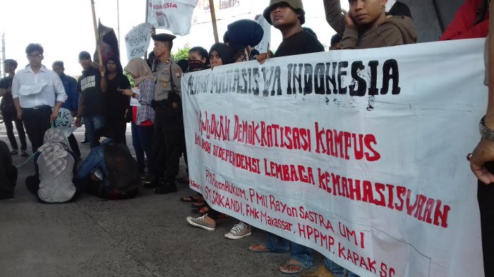 Puluhan Mahasiswa Makassar Unjuk Rasa di Bawah Flyover