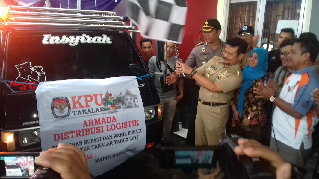 Distribusi logistik dilepas Gubernur Sulsel Syahrul Yasin Limpo (SYL) dan bersama KPU di Kantor KPUD Takalar.
