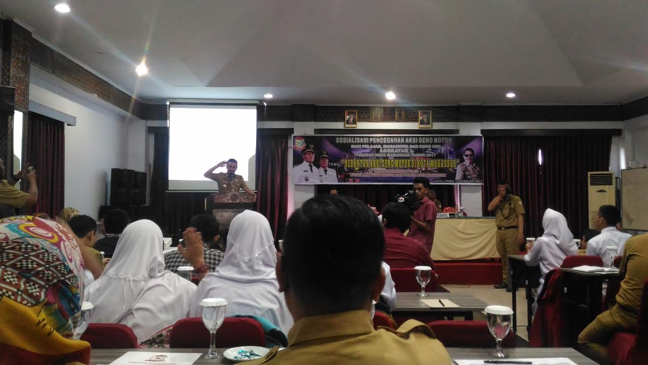 Tema dari sosialisasi ini yakni Berantas Aksi Geng Motor di Kota Makassar.