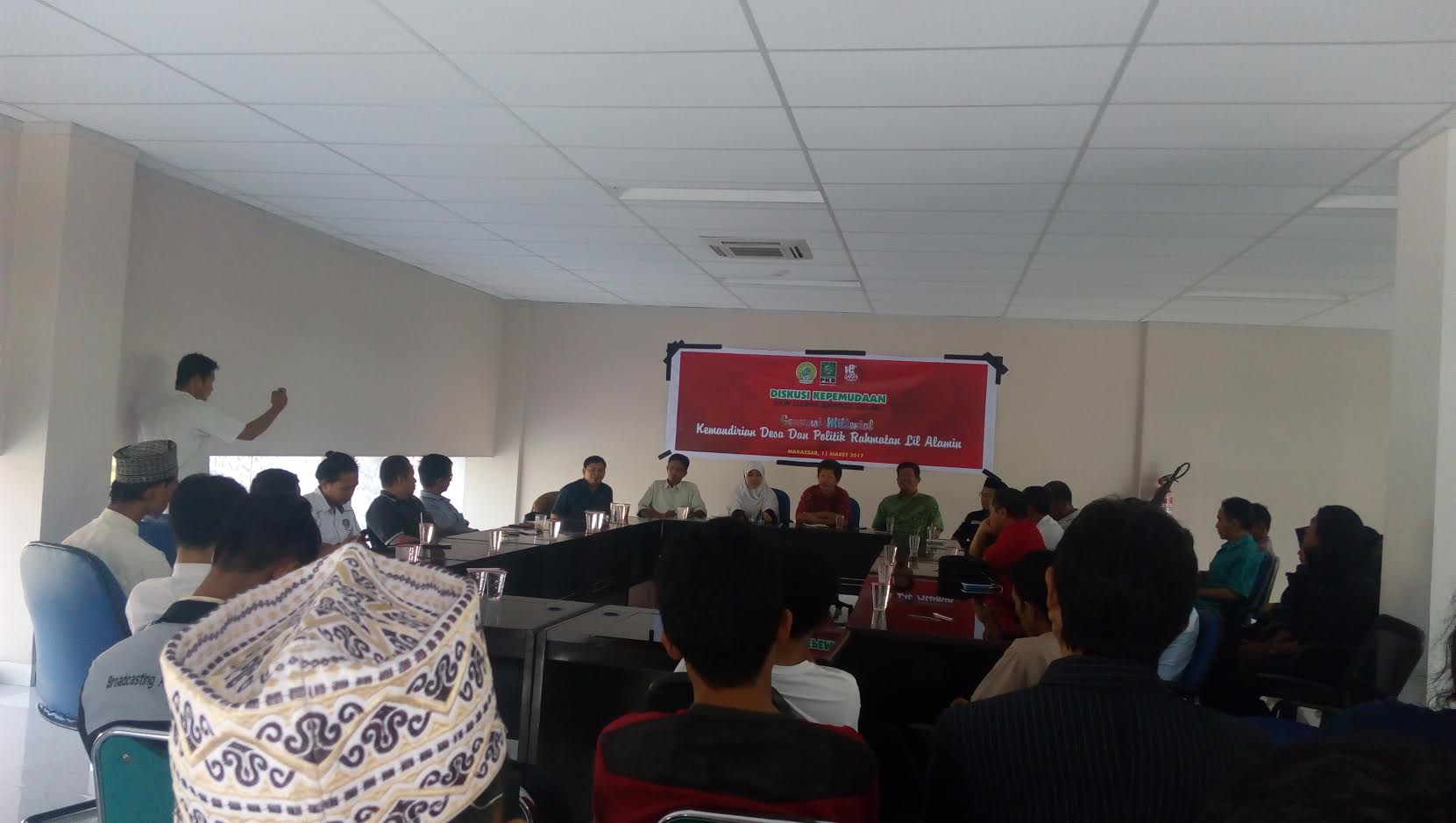 TRIBUN-TIMUR.COM, MAKASSAR - Ratusan pemuda dan remaja dari Pondok Pesantren An Nahdlah Makassar, Pergerakan Mahasiswa Islam Indonesia (PMII), dan kader Garda Bangsa se-Sulsel hadir dalam diskusi Generasi Millenials Kemandirian Desa dan Politik Rahmatan Lil Alamin di Lantai 4 Gedung Tribun Timur, 4, Jl Cendrawasih No 430, Makassar, Sulsel, Sabtu (11/3/2017) sore-petang.