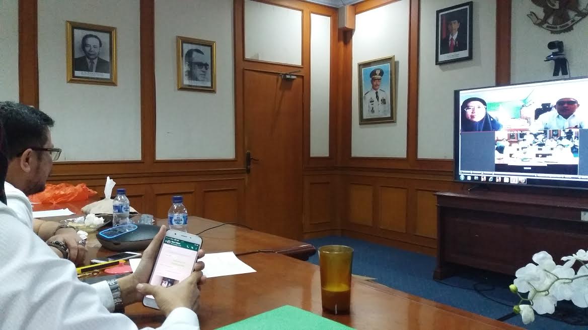 Irman Yasin Limpo (None), melakukan video conference dengan beberapa kepala sekolah untuk memantau kesiapan UNBK