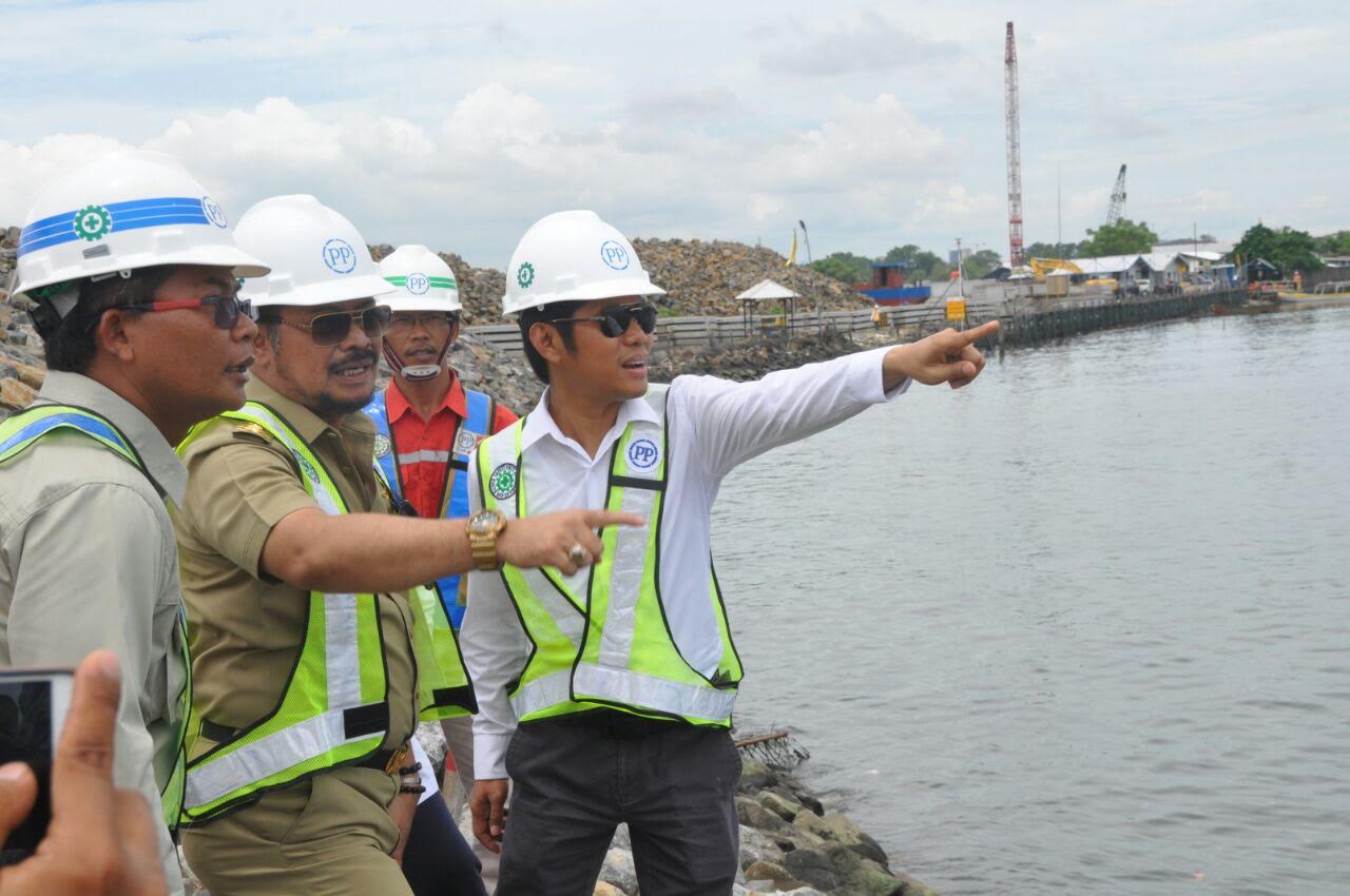 Sambil memakai alat pelindung, manajemen Pelindo IV pun mengajak Syahrul keliling area proyek.