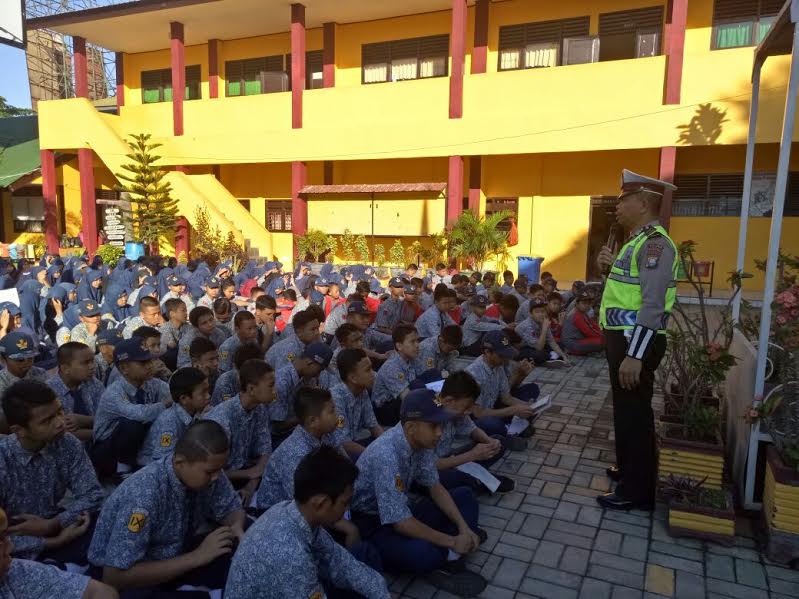 TRIBUNBANTAENG.COM, BANTAENG - Dikmas Lantas Polres Bantaeng gencar mensosialisasikan larangan pelajar menggunakan kendaraan pribadi ke sekolah.