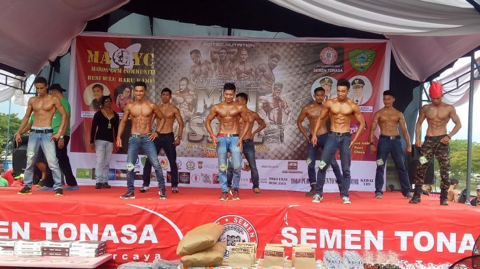 TRIBUN TIMUR.COM, MAROS - Maros Gym Community (Magyc) menggelar body contest di anjungan kawasan Pantai Tak Berombak (PTB) Maros, Minggu (16/4/2017).