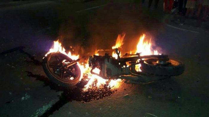 Tidak hanya itu, sepeda motor yang dikendarai pelaku turut menjadi sasaran kemarahan warga dengan cara membakarnya.