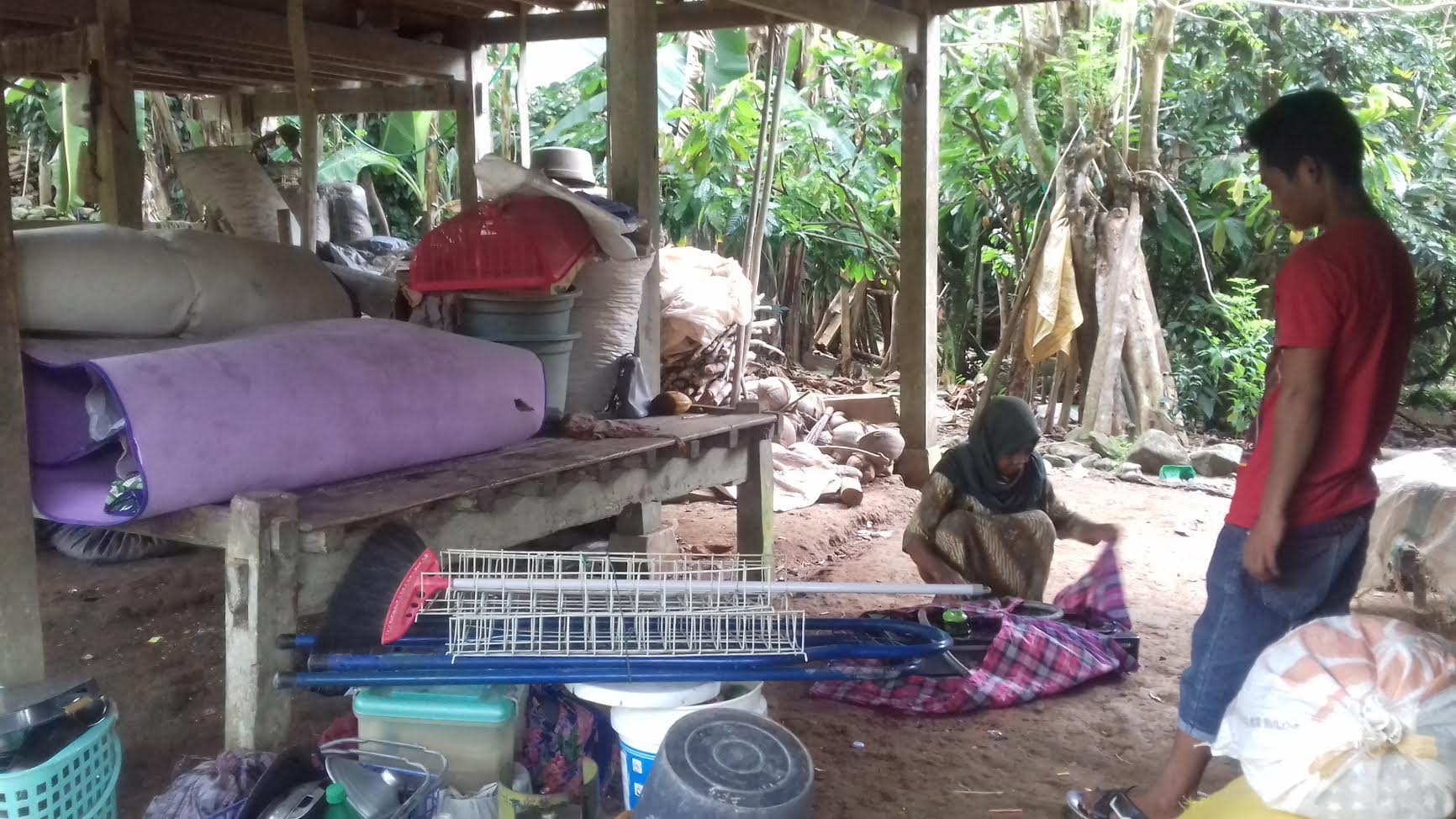 Darwis meninggalkan rumahnya beserta anak istri karena rumahnya sudah rusak diterjang longsor.