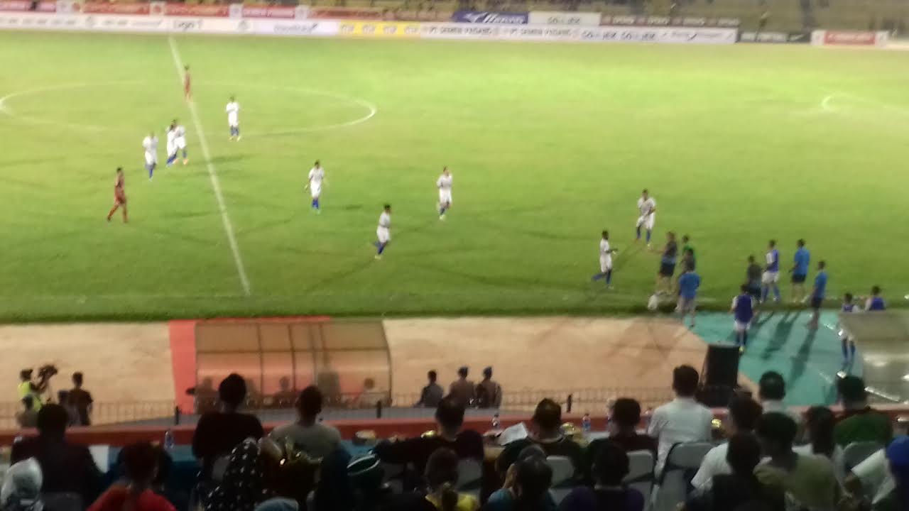 Skor sementara 1-0 pada laga lanjutan di Stadion Gelora H Agussalim, Kamis malam (8/6/2017).