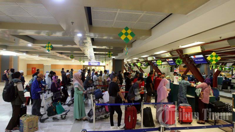 Pergerakan penumpang di bandara Sultan Hasanudin Makassar, pada H-6 mengalami kenaikan adapun puncak arus mudik di bandara tersebut diperkirakan akan jatuh pada tanggal 22 Juni -24 Juni. TRIBUN TIMUR/SANOVRA JR