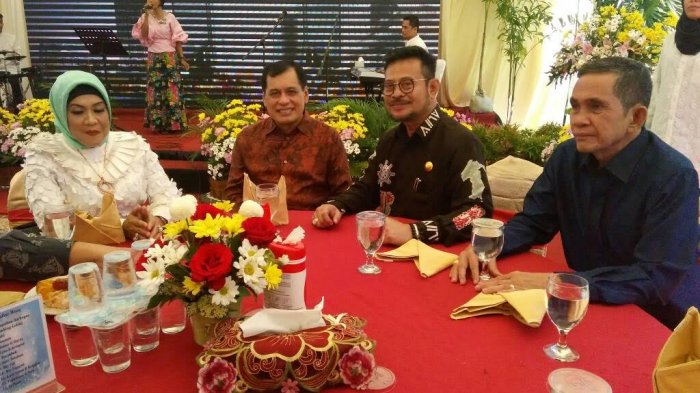 TRIBUN-TIMUR.COM-Momen lebaran dimanfaatkan ketua Golkar Sulsel, Nurdin Halid untuk bersilaturahmi dengan Gubernur Sulsel Syahrul Yasin Limpo di Rumah Jabatan Gubernur, Jalan Sungai Tangka, Senin (26/6/2017).