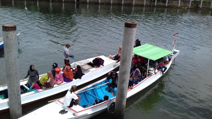 TRIBUNPANGKEP.COM, PANGKAJENE - Selama libur lebaran, jasa angkutan perahu tradisional (jolloro) di Dermaga Pangkajene, Kecamatan Pangkajene, Kabupaten Pangkep, Sulsel, panen penumpang.