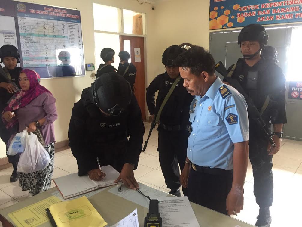 Sejumlah pejabat dan petugas rutan menyambut kedatangan rombongan Brimob tersebut.(*)