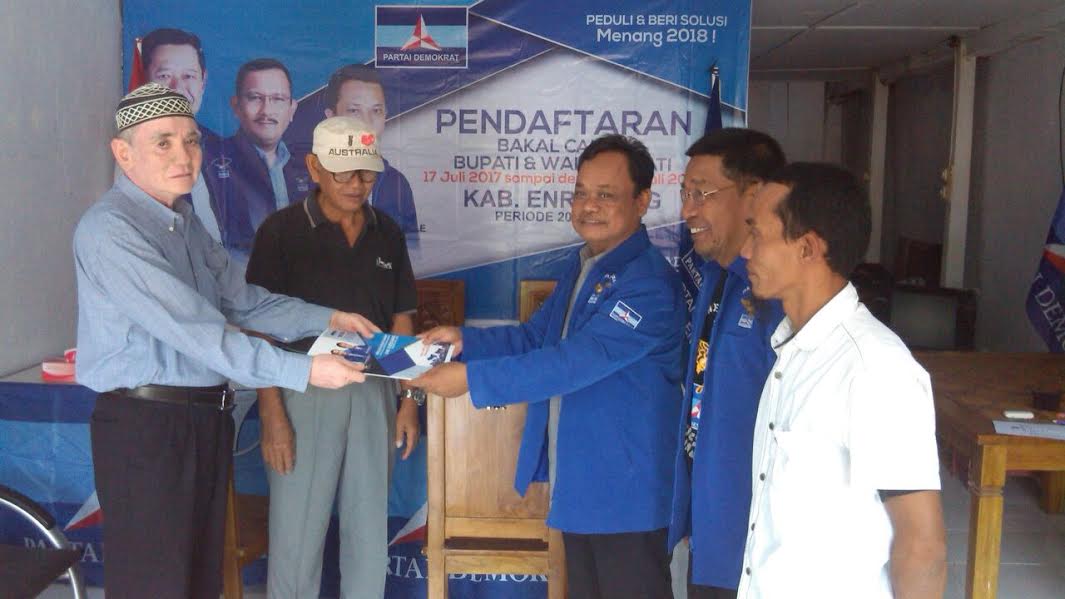 TRIBUNENREKANG.COM, ENREKANG - Bakal Calon Bupati Enrekang Masrur Makmur Latanro pengambil formulir pertama di Sekretariat Partai Demokrat, Kelurahan Juppandang, Kecamatan Enrekang, Rabu (19/7/2017).