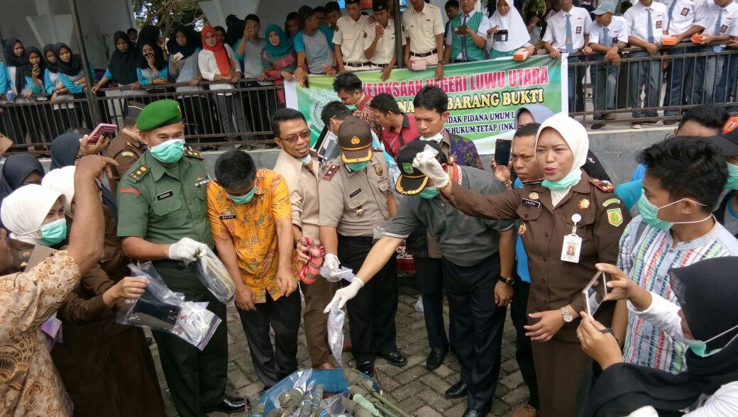 TRIBUNLUTRA.COM, MASAMBA - Kejaksaan Negeri (Kejari) Luwu Utara memusnahkan 26,944 gram narkoba jenis sabu-sabu di Lapangan Taman Siswa, Kelurahan Kappuna, Masamba, Kamis (20/7/2016).