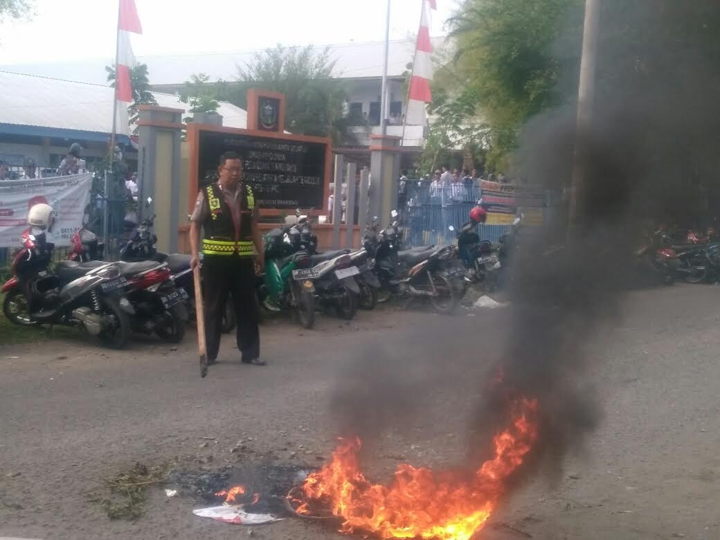 Mereka juga memembakar ban di depan Sekolah sebagai simbol protes atas tindakan Kepala Sekolah.