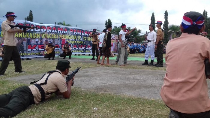 Ada yang memperagakan kubu penjajah dan ada yang memperagakan kubu pejuang Laptur yang dipimpin oleh Said Kareng Sila.