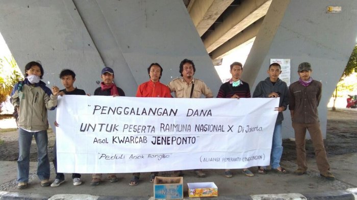 TRIBUNJENEPONTO.COM, MAKASSAR - Sejumlah pemuda asal Jeneponto mengatasnamakan diri Aliansi Pemerhati Lingkungan menggalang dana untuk 33 rombongan Raimunan Nasional asal Jeneponto.