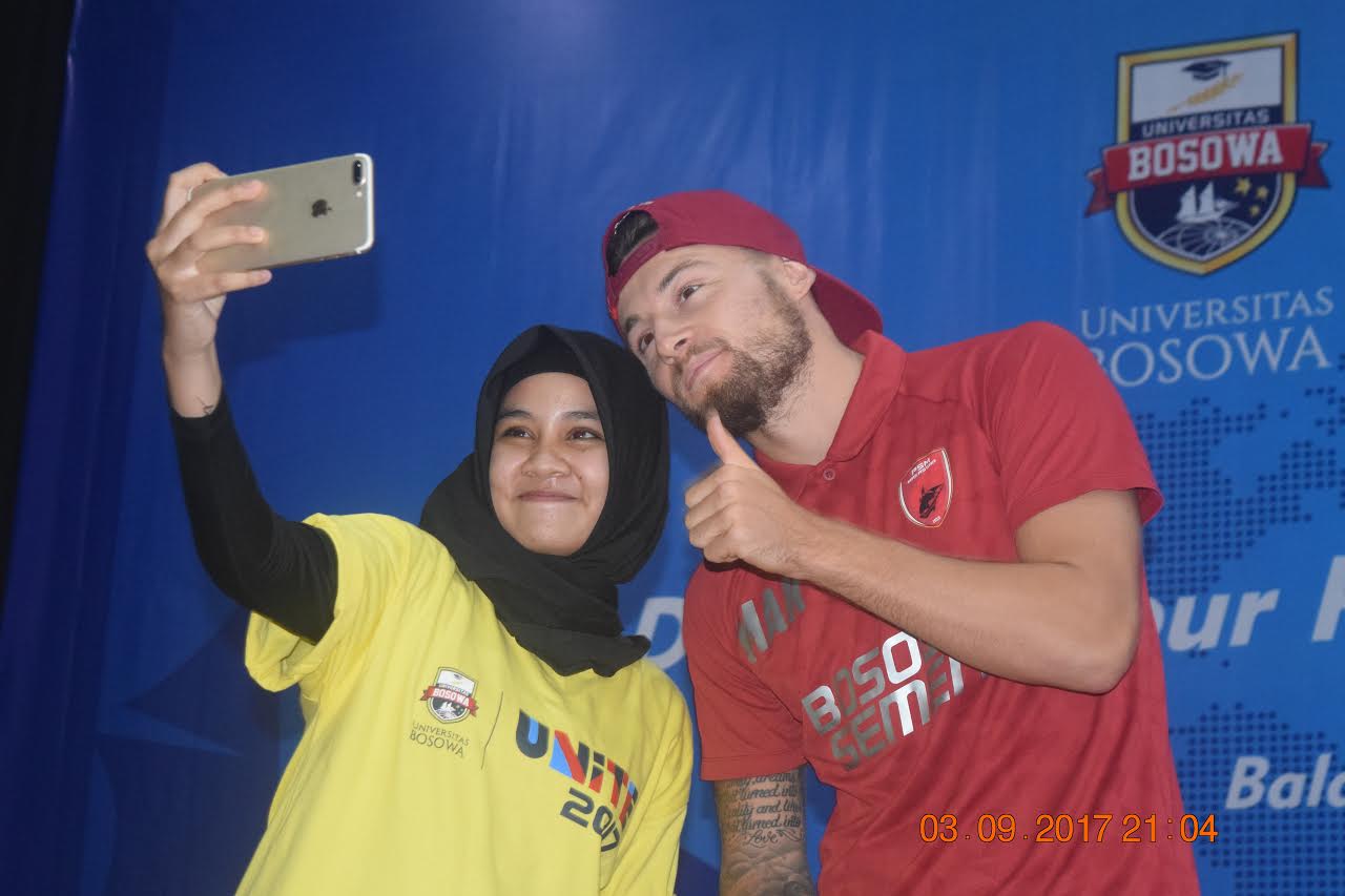 TRIBUN-TIMUR.COM,MAKASSAR- Marc Antony Klok bersama dengan tiga pemain PSM lainnya hadir di Universitas Bosowa, Senin (4/9/2017).