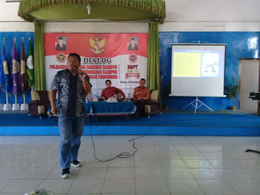 Dialog tersebut dilaksanakan oleh Forum Koordinasi Pencegahan Terorisme (FKPT) Sulbar di Universitas Tomakaka Mamuju, Jl Ir Juanda, Kelurahan Mamunyu, Kecamatan Mamuju.