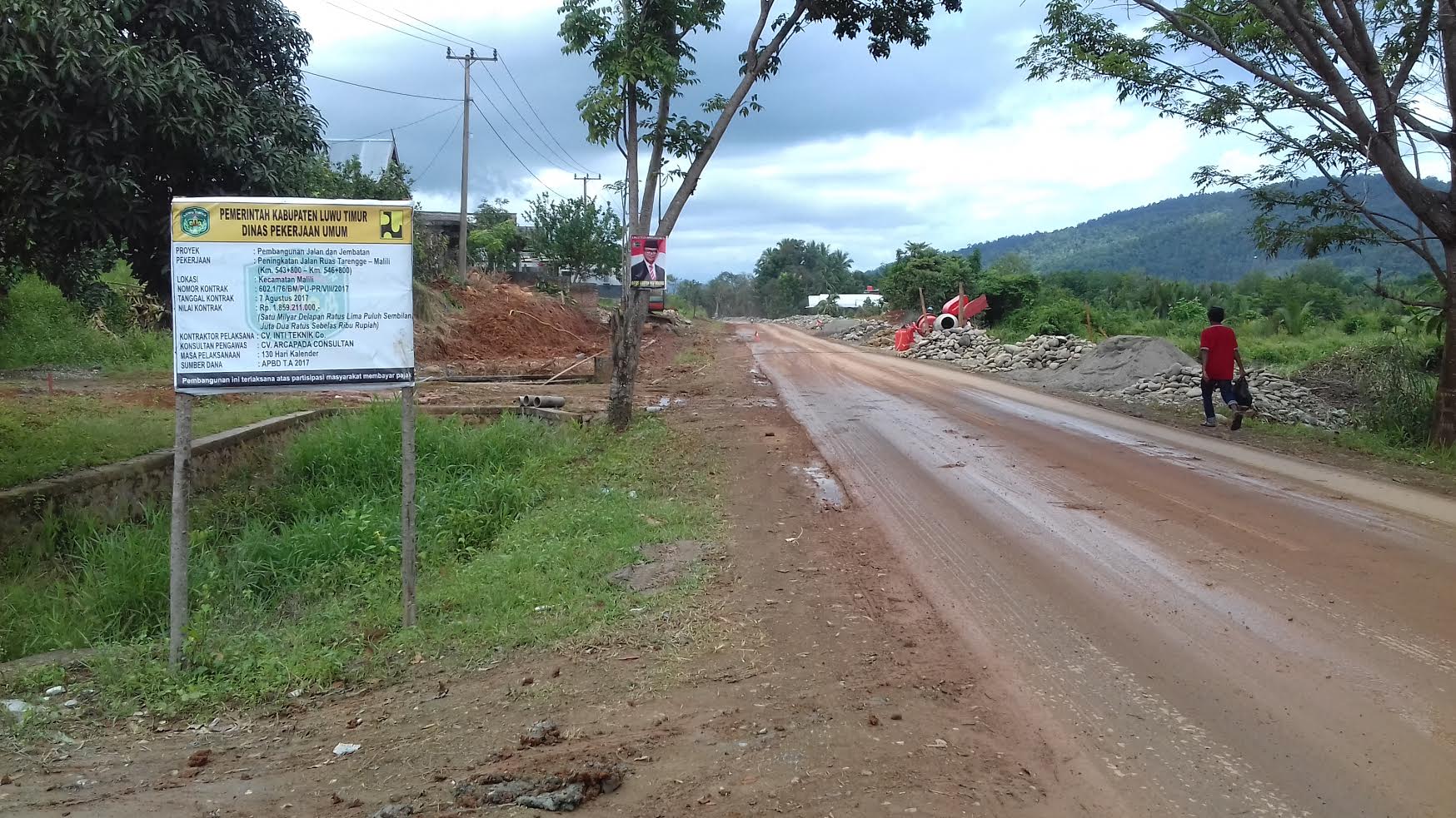 Jenis pekerjaan peningkatan jalan ruas Tarengge-Malili (Km 543+800- Km 546+800) sementara tahap pengerjaan.